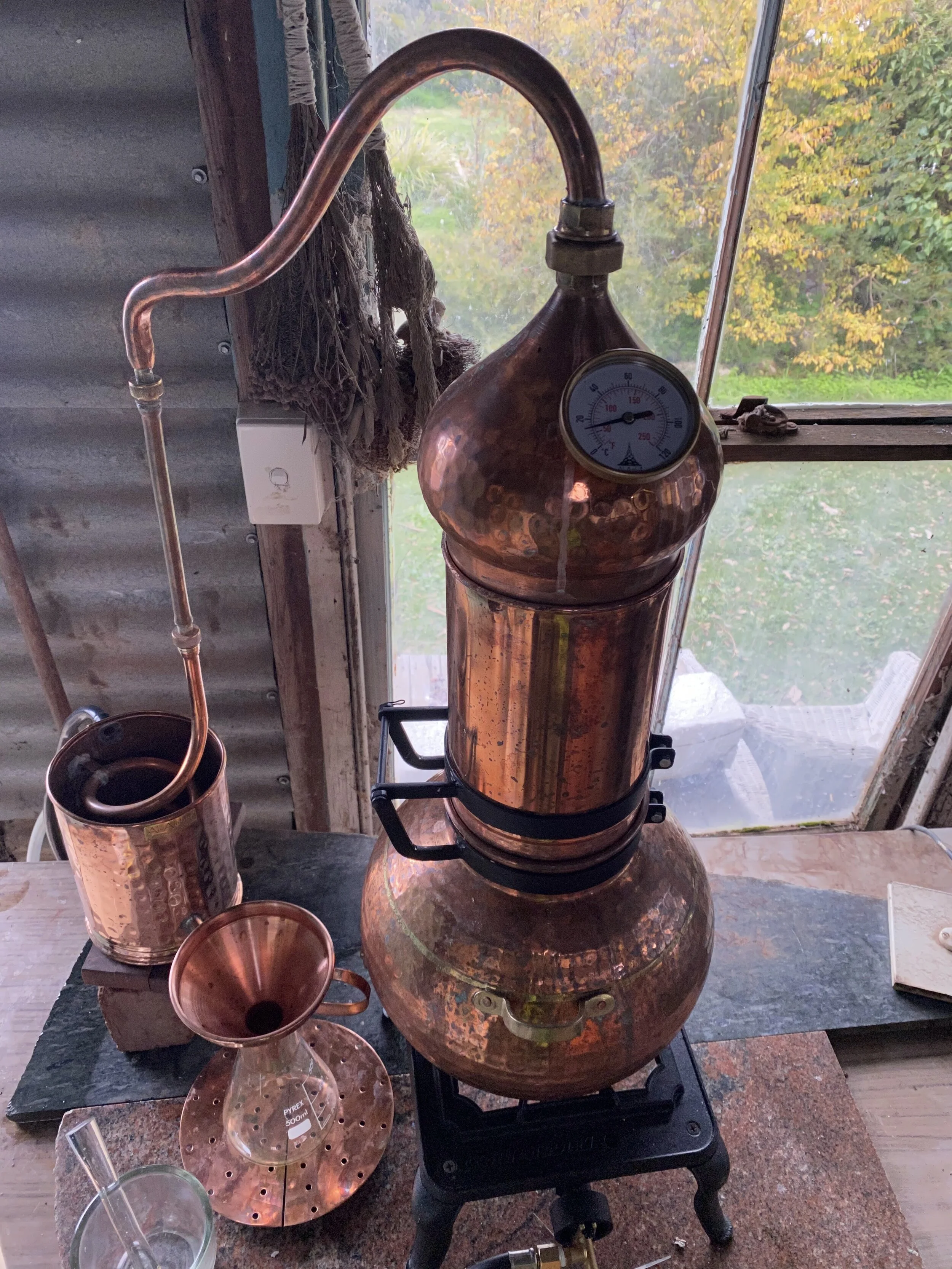 Distilling the Landscape involves creating a laboratory with a traditional Portuguese copper alembic still. To research and refine the alchemical process of distilling plant essences, becoming fluent in the medium of aromatics complements and extends my current artistic practice into a more intimate embracing of Country and opens a new area of practice to share with audiences.